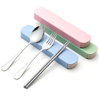 Set di stoviglie portatili in acciaio inossidabile 3 pezzi attività di viaggio all'aperto Set per studenti Hotel regali pubblicitari Set posate