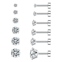 أقراط مرصعة بإبرة دقيقة من الزركون المستدير ، أقراط ألماس مزدوجة مطلية بالكهرباء من الفولاذ المقاوم للصدأ بأربعة شقوق